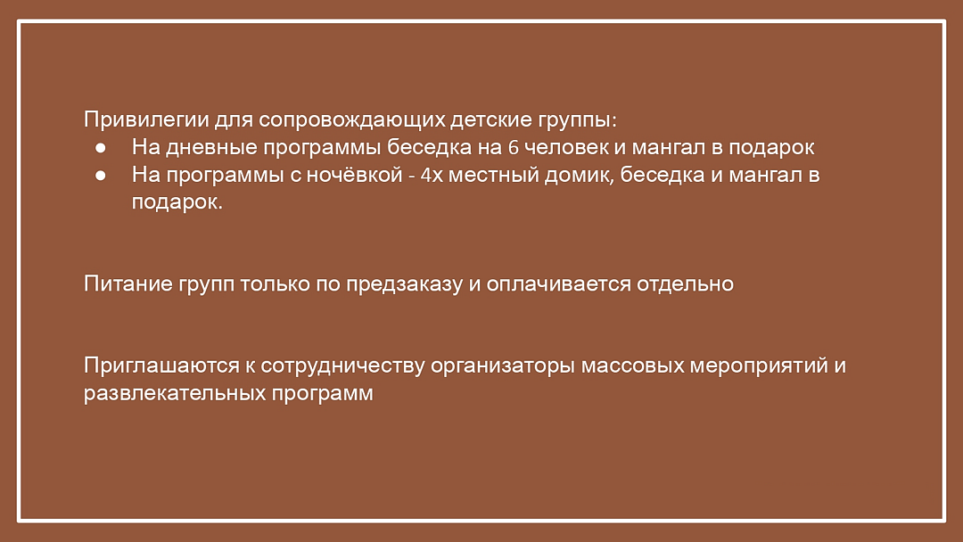 - бросать окурки на территории базы отдыха, поджигать листву/траву и на прилегающих территориях.