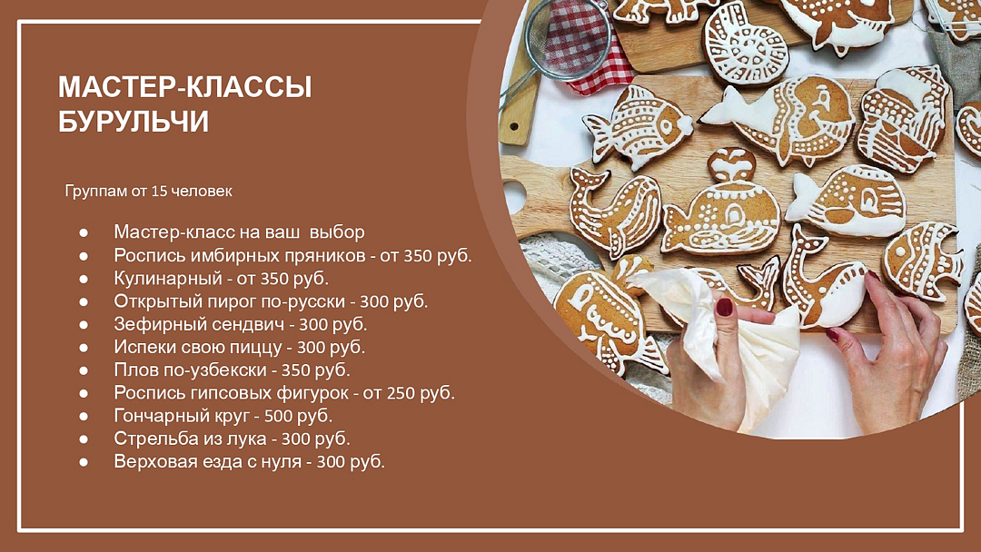 В течение всего года «Бурульча» проводит разнообразные культурные мероприятия и праздники как для больших групп, так и для отдельных гостей.