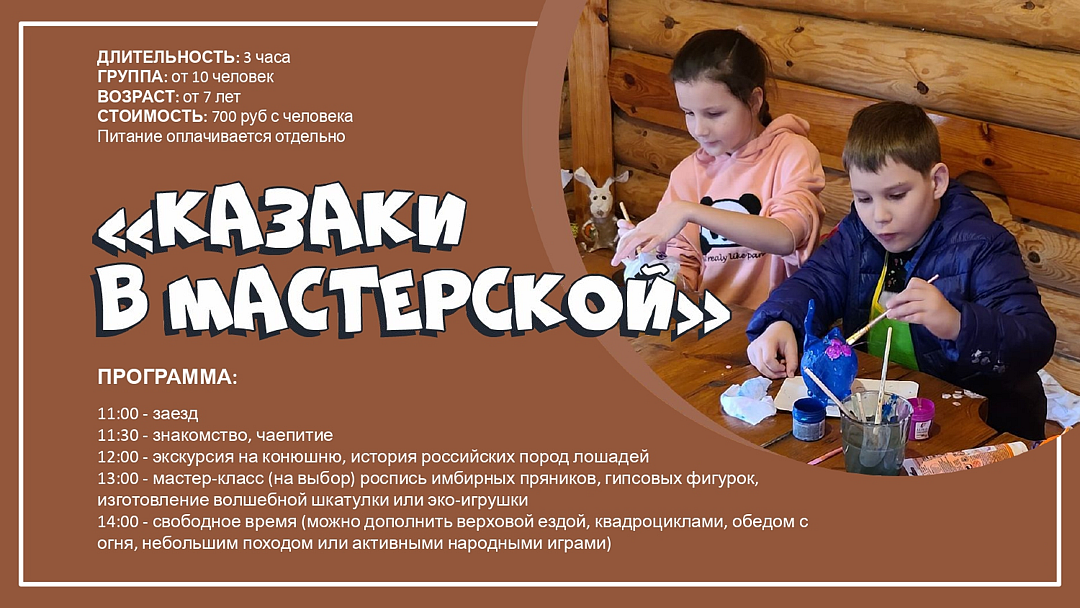 В комплексе также проходят ярмарки, работает швейная мастерская для юных гостей, организуются праздничные торжества.
