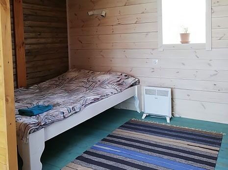 До 4 спальных мест – две 2-х спальные кровати, кухня (холодильник, чайник, посуда), санузел, душ, Wi-Fi,