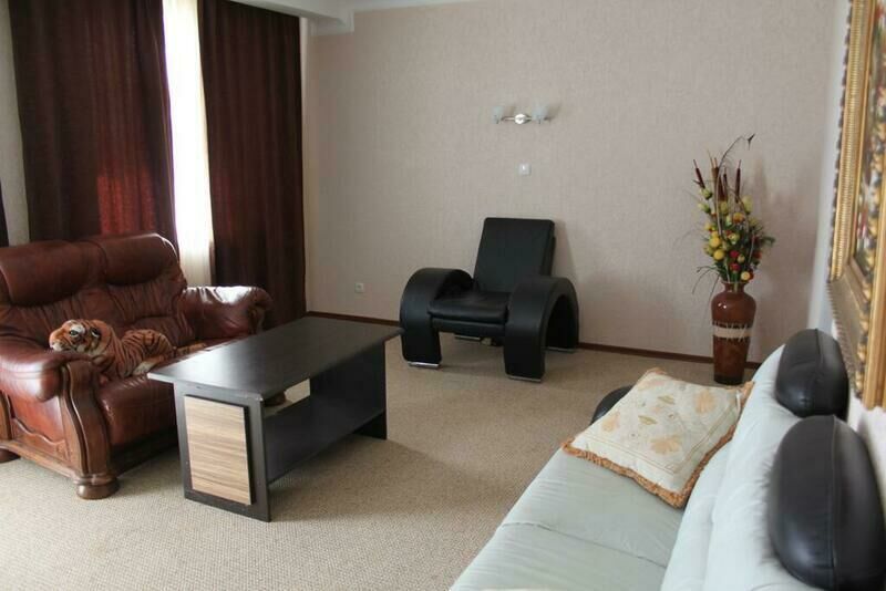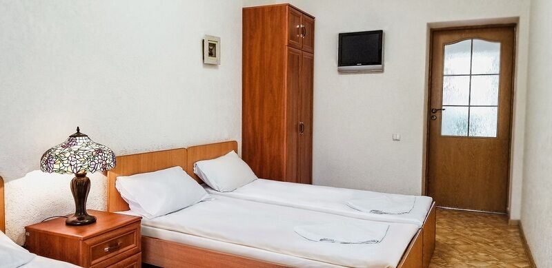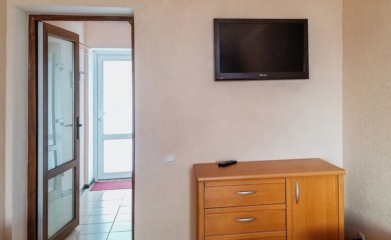В номере есть все необходимые удобства, набор мебели и техники, в том числе: телевизор, кондиционер, холодильник, телефон, wifi.