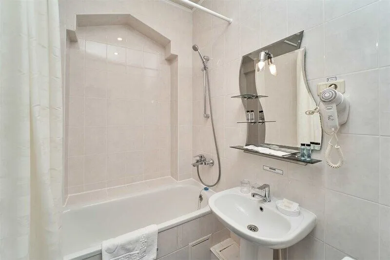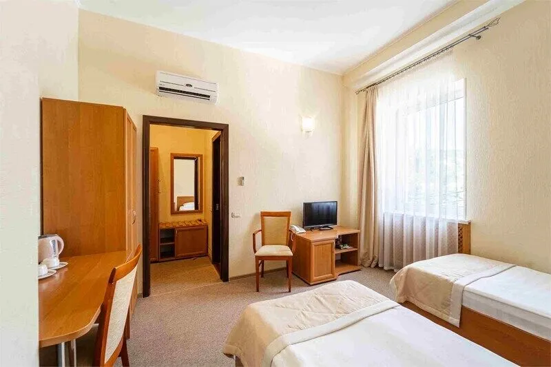 Стандартный номер с двумя односпальными кроватями оформлен в приятных теплых тонах, напольное покрытие-ковролин, рабочее место стол консоль, прикроватная тумба, мини холодильник, подставка для багажа. Ванная комната располагает ванной и душем, косметическими принадлежностями и мини парфюмерией, феном.