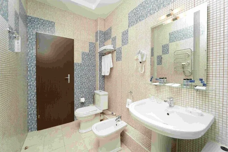 Ванная комната выполнена в восточном стиле и выложена голубой мозаикой. Ванная, душ, биде, фен и косметические принадлежности для комфортного пребывания наших гостей.