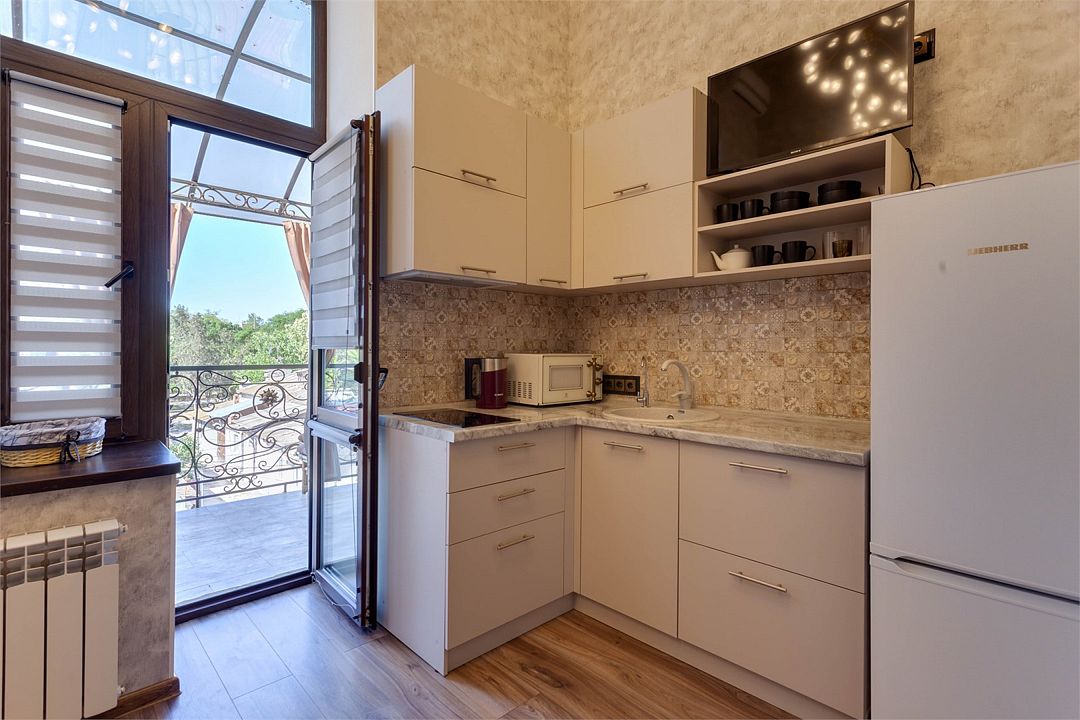 сент. 2020 г.Приличный Гостевой дом с замечательным администратором!Отдыхали в этом гостевом доме в сентябре 2020г. Не были уверены в выборе. Но все соответствует описанию и фотографиям. Удобное месторасположение. До моря и набережной минут 5. Рядом много магазинчиков. Несколько номеров на первом и втором этажах. Мы жили на первом в самом большом. Всё чисто, аккуратно, свежая мебель. Постельное белье и полотенца меняют раз в три дня. В номере есть холодильник, телевизор, кондиционер, фен. WI-FI хороший и быстрый. Хватало, чтобы работать и смотреть кино. На этаже есть отдельная (полностью укомплектованная) кухня, которой можно пользоваться в любое время. При кухне есть открытая веранда, где можно отдохнуть. Есть стиральная машина. На втором этаже у них апартаменты с кухнями. Администратор-управляющая ЮЛЯ - большая МОЛОДЕЦ! Старается решить все вопросы и сделать ваш отдых беспроблемным и позитивным. Человек очень коммуникабельный и к каждому отдыхающему находит свой подход. Поэтому там и уютно. Трансфер из/в аэропорт можно заказать сразу. Ее муж и привезет, и отвезет в любое время дня и ночи.
