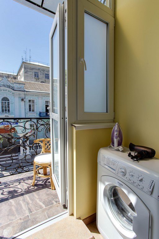 Wi-Fi, кондиционер, фен, санузел, банные полотенца, пляжные полотенца, тапочки, гигиенические средства, косметические средства, двуспальная кровать, гипоаллергенное белье, гладильная доска, ортопедический матрас, шкаф для одежды, вешалки, письменный стол, багажная тумба, зеркало, кухня, набор посуды, обслуживание номеров, сейф, стиральная машина, чайник, раковина, питьевая вода, отопление, душ, вид на город, ламинат, высокие потолки, тостер, кухонная посуда, стаканы, кухонная утварь, столовые приборы, стул, туалетные средства, туалет, телевизор с плоским экраном, мини-холодильник, москитная сетка, гостиничная парфюмерия, номер для некурящих, рабочий стол, антибактериальное средство для рук, уборка номера, услуги прачечной (платно), мылоВ гостиничном номере