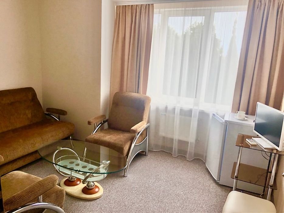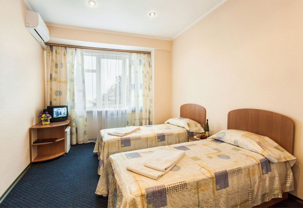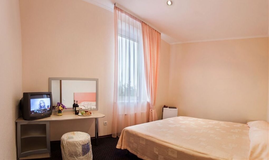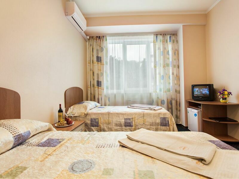 Пансионат, состоящий из одного 3-х этажного корпуса, располагается на благоустроенной территории площадью 1 гектар. Гостей ожидают двухместные номера категории Стандарт, Полулюкс и Люкс. Все интерьеры выдержаны в приятной цветовой гамме, в каждом номере есть собственный санузел с ванной или душем, кондиционер, телевизор, холодильник, доступна сеть wi-fi.