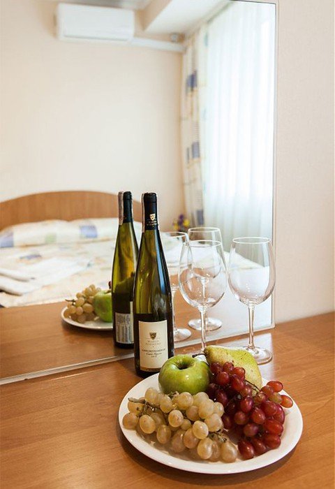 НедостаткиВ двухкомнатном номере тесная душевая комната. Далековато до центра, но можно добраться на маршрутке. В ресторане не было кофе.