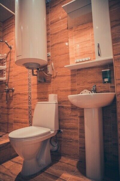 Санузел (душ, туалет и умывальник) находится на этаже. 1 санузел на 2 номера.