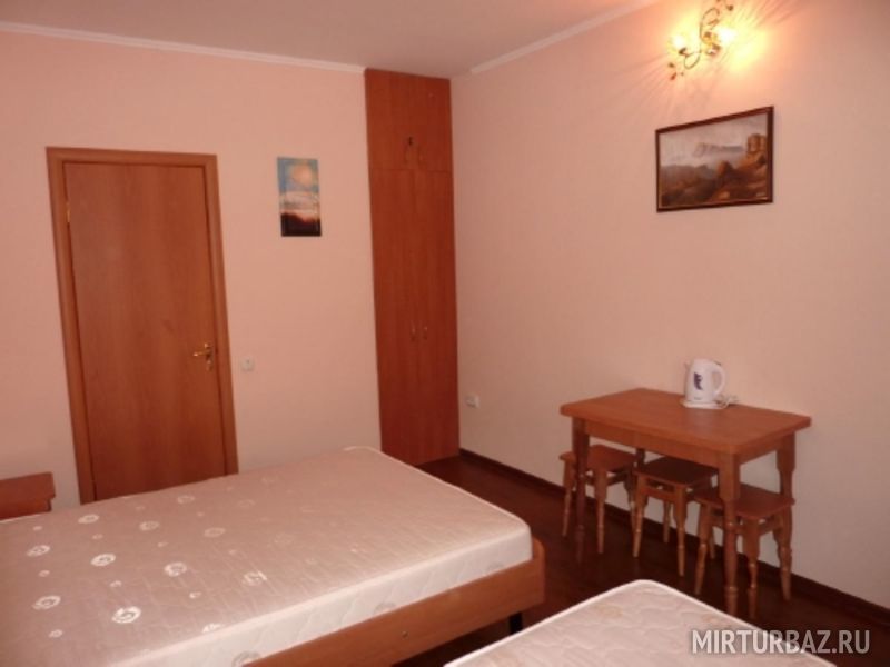Гостевой дом находится в поселке Заозерное и открыт с 2010 года. Рассчитан на гостей с детьми, поэтому все номера здесь 3-х местные с двуспальной и односпальной кроватью, есть общая кухня для приготовления еды и всего 500 м до моря. Стоимость проживания здесь более чем доступная, поэтому позволить себе летний отдых может практически каждый. Гости, которые хотят питаться комплексно или оздоровиться с помощью специальных процедур, могут воспользоваться услугами санаторно-оздоровительного центра «Маяк». он находится рядом с гостевым домом и проводит лечение и профилактику заболеваний верхних дыхательных путей и легких нетуберкулезного происхождения, заболеваний опорно-двигательного аппарата, нервной и эндокринной систем, кожи и многого другого. Недалеко от поселка город Евпатория, где можно приятно провести вечером время в ресторанах и кафе или отправиться на экскурсии.