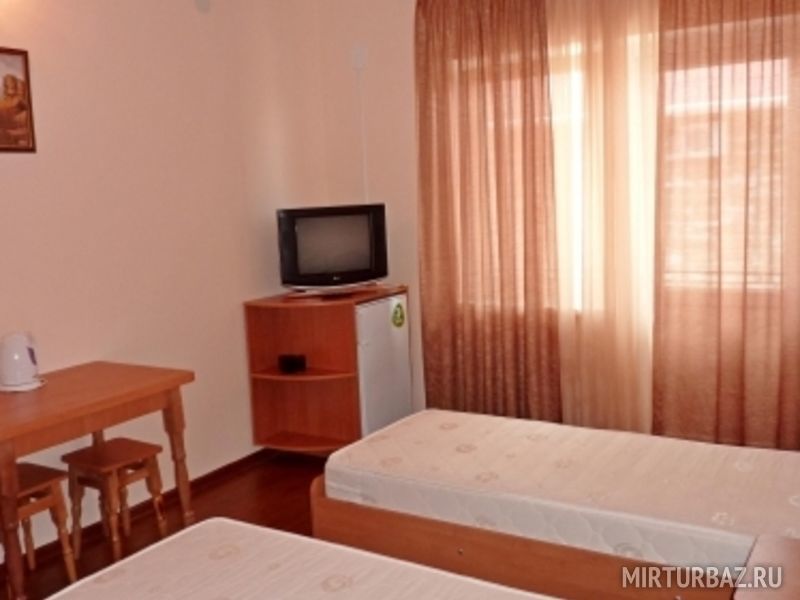 Просторный однокомнатный номер рассчитан на проживание 3 человек, но по желанию гостя может быть размещен еще ребенок (стоимость дополнительного места уточняется при бронировании). В комнате есть балкон и может быть установлен кондиционером (наличие нужно уточнять перед бронировкой). Смена постельного белья проходит 1 раз в неделю, а уборка номера уже по просьбе гостя.