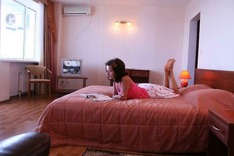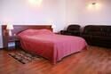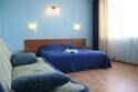 В номере: двуспальная или две односпальные кровати, 2 прикроватные тумбочки, 2 стула, письменный и журнальный стол, раскладной диван, шкаф, холодильник, кондиционер и спутниковое ТВ, балкон. Доп. место - раскладной диван