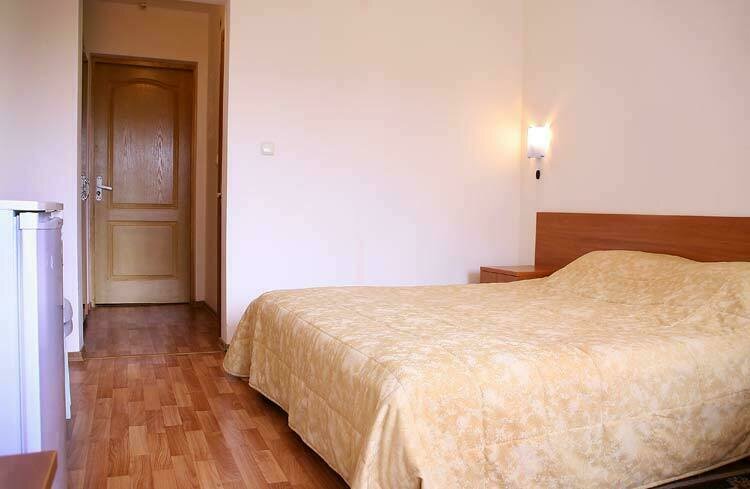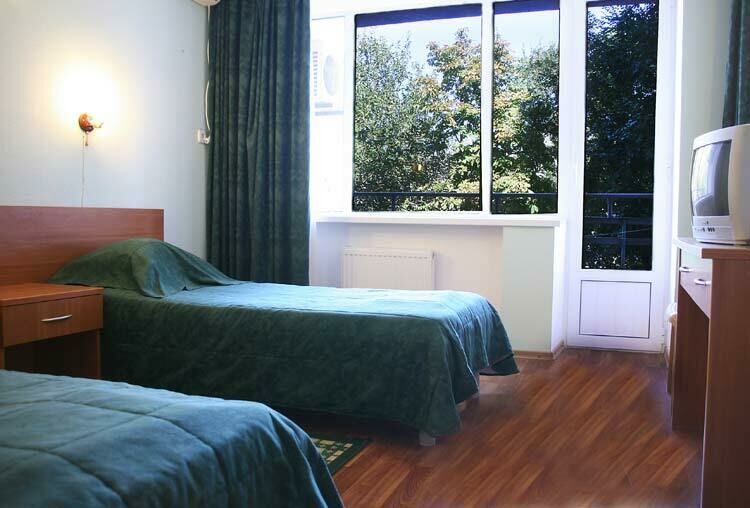 В номере: две односпальные или одна двуспальная кровати, 2 прикроватные тумбы, стул, шкаф и тумба для обуви, холодильник, кондиционер и спутниковое ТВ, Wi-Fi, балкон