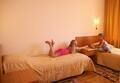 В номере: двуспальная кровать, 2 прикроватные тумбы и 2 стула, письменный и журнальный стол, раскладной диван, шкаф, холодильник, кондиционер и спутниковое ТВ, балкон. Доп. место - раскладной диван