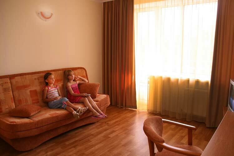 Номерной фонд отеля включает 78 номеров разного уровня комфортности. Все номера выполнены в современном стиле, оборудованы добротной мебелью и функциональной техникой. В каждой комнате есть балкон и собственная ванная комната с душем. Возможен прокат бытового инвентаря – электрочайников, детских кроваток, утюгов, фенов, стиральных машинок. В пункте проката можно взять велосипеды для всей семьи, комплекты для игры в бадминтон или настольный теннис, снаряжение для охоты и рыбалки.