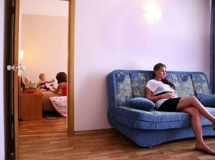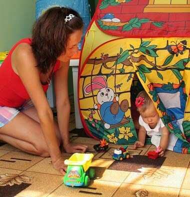Для маленьких гостей комплекса открыта игровая детская комната. Здесь отдыхающие могут оставить своих малышей под присмотром опытных воспитателей. У них всегда найдутся сценарии для веселых, увлекательных и занимательных занятий. На полу ковролиновое покрытие, есть стол для творческих занятий – рисования, лепки, аппликаций, палатка для активных игр. В наличии книги, плюшевые игрушки, конструкторы.