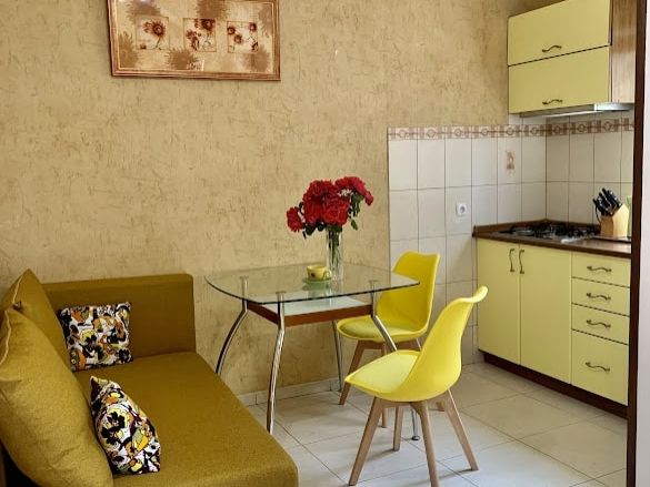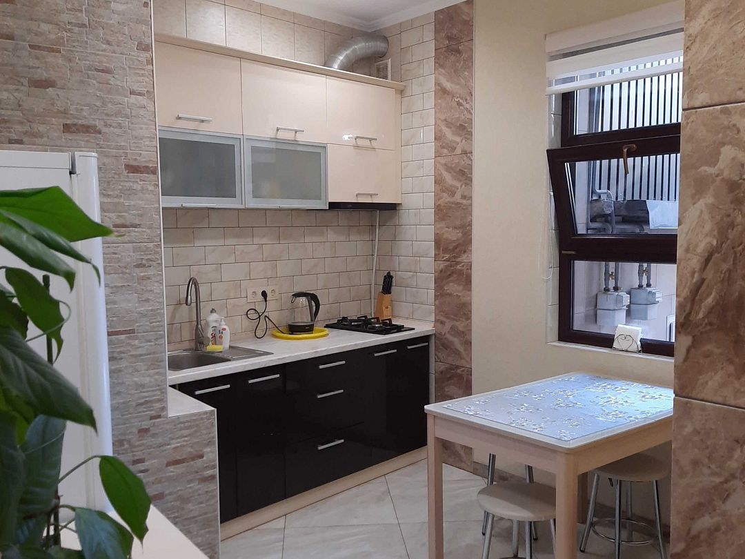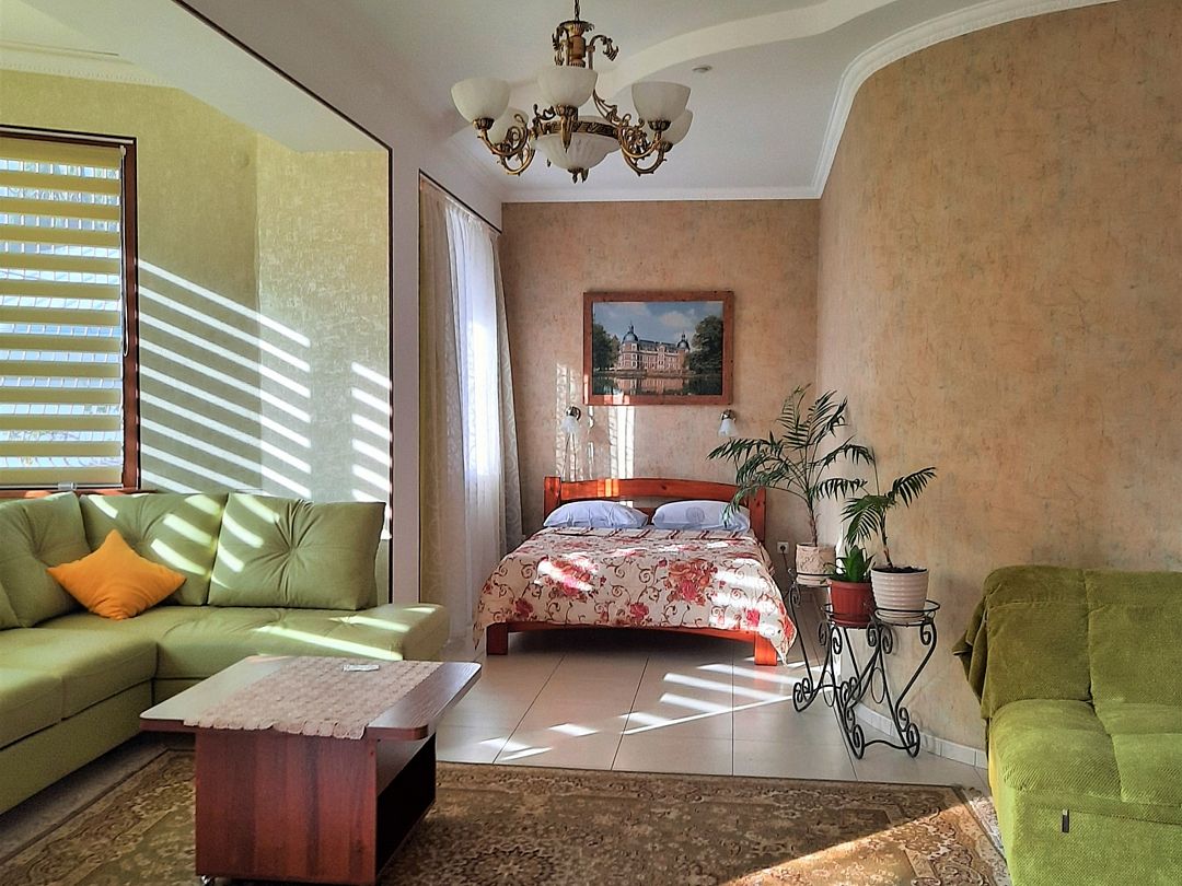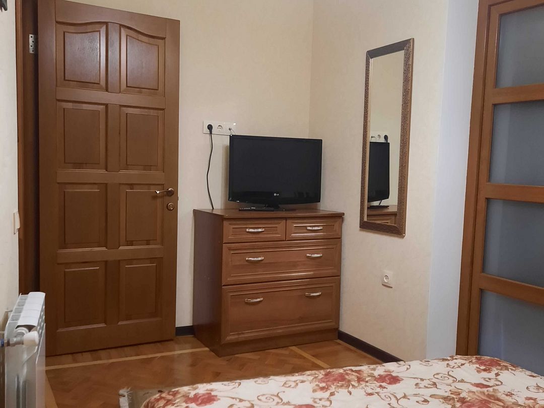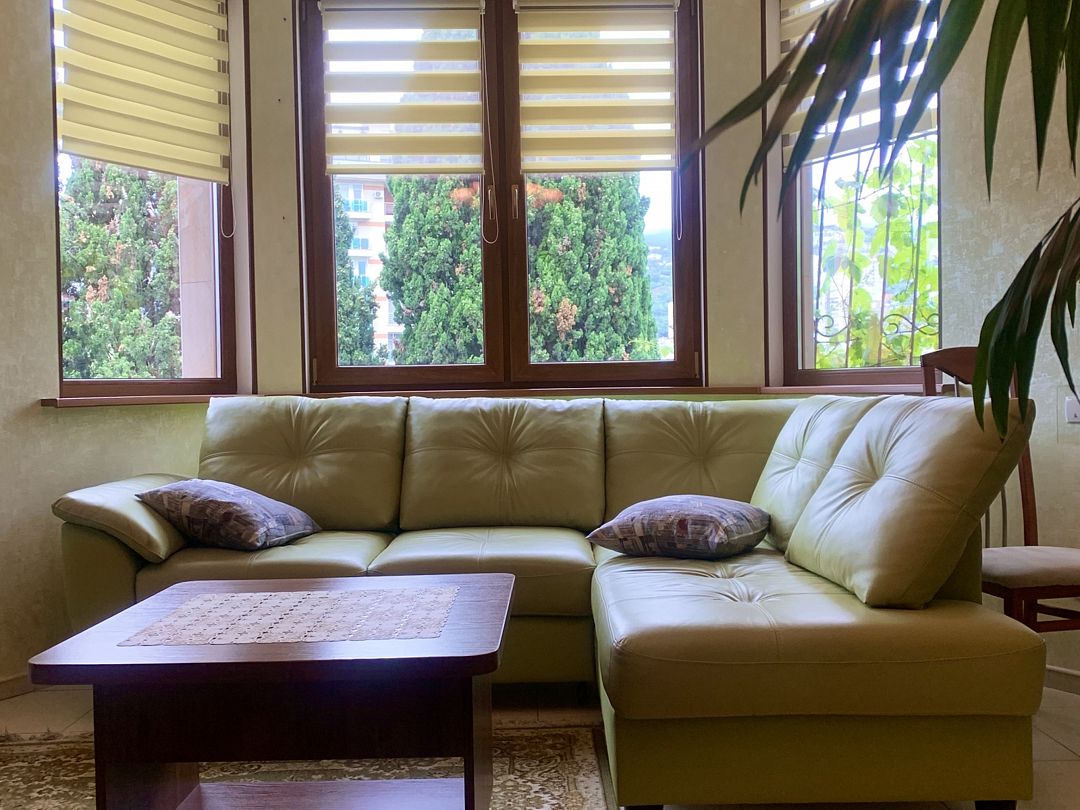 Апартаменты на 2-х с дополнительным местом в центре Ялты с парковкой в закрытом дворе . Комната 34м2 с двумя большими лоджиями расположены стильный кожаный диван , двухспальная кровать и удобное кресло-кровать. Кухня оборудована техникой и посудой, комната кондиционером . Санузел с душевой кабинкой и стиральной машинкой , встроенный фен. В закрытом уютном дворике расположены беседки и барбекю. Массандровский пляж в 2-х минутах прогулочного шага. Большая видовая терраса с видом на море и горы.Семейный