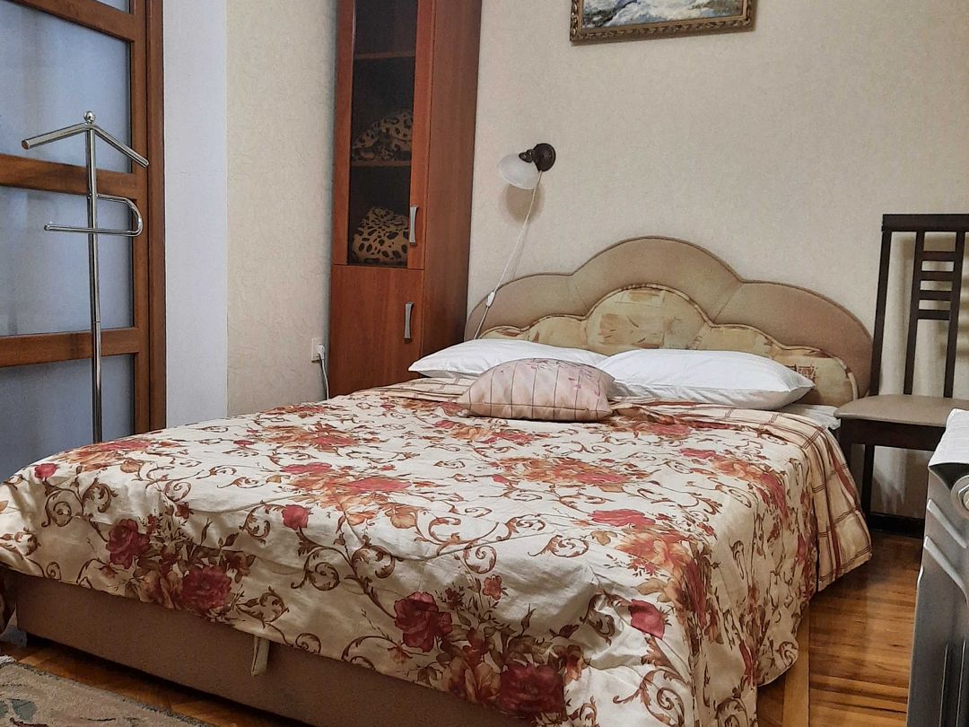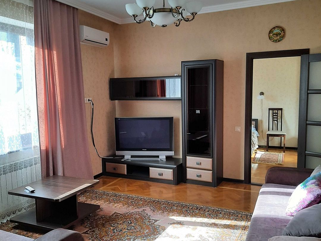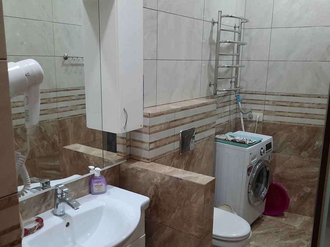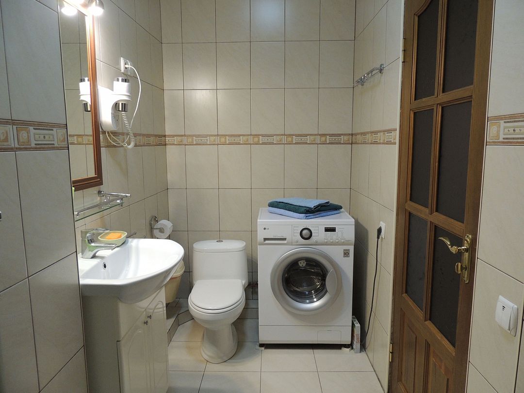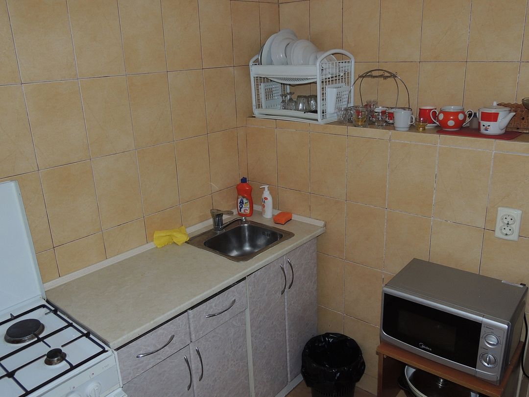 Апартаменты на 2-х с дополнительным местом в центре Ялты с парковкой в закрытом дворе . Комната 34м2 с двумя большими лоджиями расположены стильный кожаный диван , двухспальная кровать и удобное кресло-кровать. Кухня оборудована техникой и посудой, комната кондиционером . Санузел с душевой кабинкой и стиральной машинкой , встроенный фен. В закрытом уютном дворике расположены беседки и барбекю. Массандровский пляж в 2-х минутах прогулочного шага. Большая видовая терраса с видом на море и горы.Семейный
