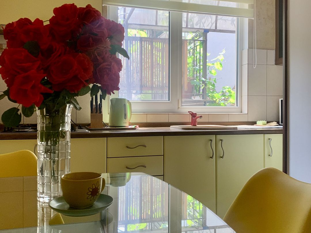 Апартаменты на двоих в центре Ялты с парковкой в закрытом дворе . В комнате двухспальная кровать , кондиционер и телевизор . Кухня-столовая оборудована техникой и посудой. Санузел с душевой кабинкой , стиральной машинкой и встроенным феном . В закрытом уютном дворике расположены беседки и барбекю. Большая видовая терраса с видом на море и горы . На втором уровне дома расположена большая видовая терраса с видом на море и горы.Массандровский пляж в 2-х минутах прогулочного шага.Люкс