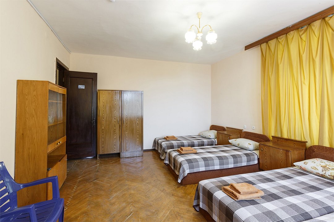 Площадь номера – 22 кв.м В каждом номере: две односпальные кровати, маленький диван или кресло, набор необходимой мебели, телевизор, кондиционер, холодильник; санузел. В номере два основных и одно дополнительное место.Услуги и удобства