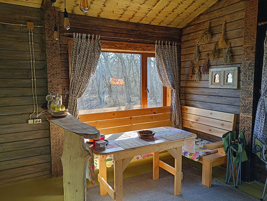 На территории базы есть русская баня из сосны с комнатой отдыха и видом на природу, которую топят натуральными дровами. К услугам гостей –– шатры, чайный дом, мангальная зона, костер и крытая веранда, на которых проходят мастер-классы, телесные практики и другие мероприятия. Также на базе есть собственная агроферма, на которой выращивают свежие овощи, ягоды и зелень, которые можно попробовать.