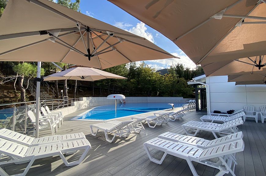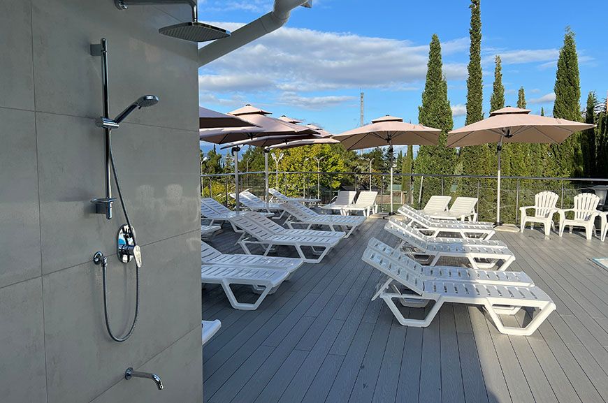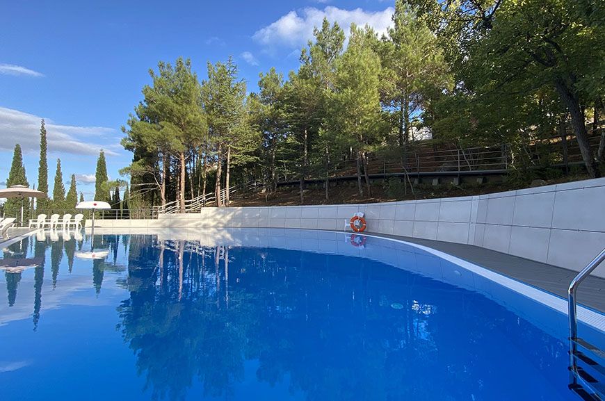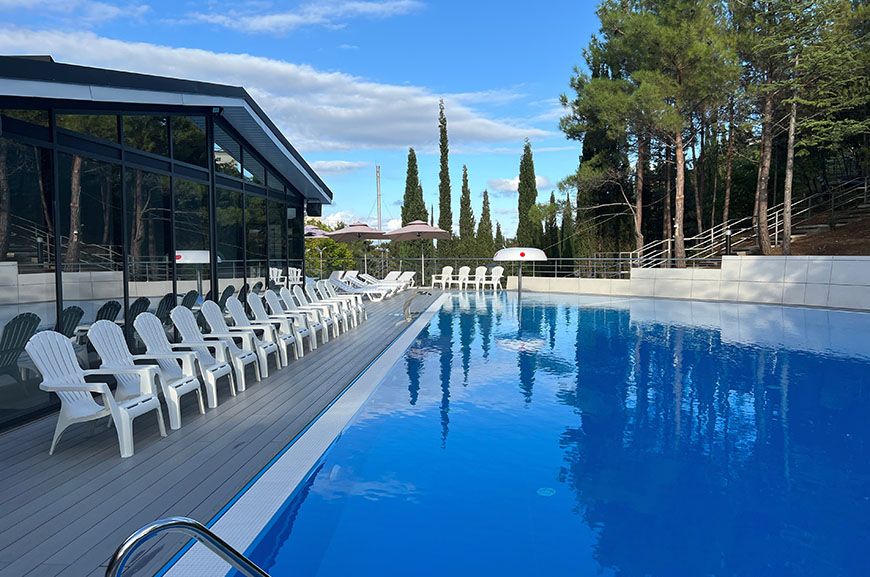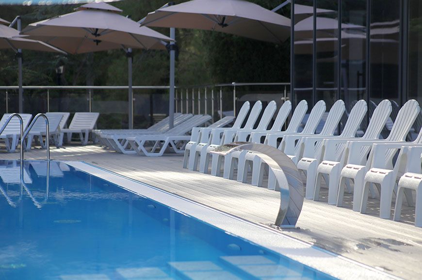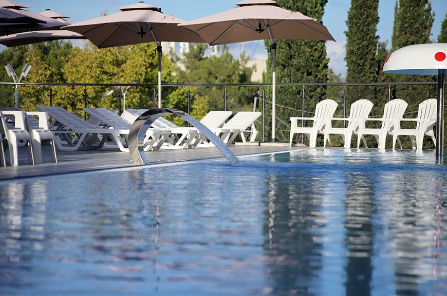 Тип бассейна: открытый бассейнВода в бассейне: подогреваемый бассейнРядом с бассейном: душ, шезлонги, зонтикиТемпература в бассейне: 29 °CВремя работы: от 9 до 19Глубина (диапазон): от 90 до 150 смПериод работы: от 01.05 до 15.10Бассейн включает две зоны — для взрослых и детей, с подогревом воды до комфортных 29 градусов. Глубина детской зоны — 0,9 м, взрослой — 1,5 м. Есть гидромассаж. Вода в бассейне всегда кристально чистая благодаря регулярной уборке и тщательному контролю качества. Плавание в бассейне - отличная альтернатива на случай, если море штормит или не достаточно теплое для комфортного купания.
