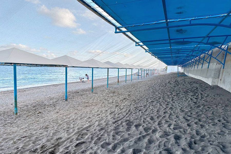 Тип пляжа: песчано-галечный, собственныйИнфраструктура: зонтики, шезлонги -