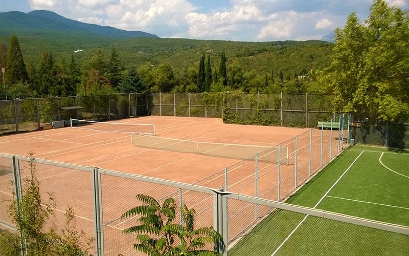 К услугам гостей: уютные номера, медицинский центр, спортивные площадки, танцплощадка, киноконцертный и конференц-залы, а также собственный благоустроенный пляж.