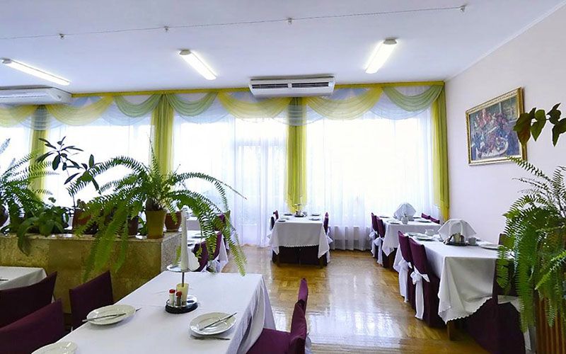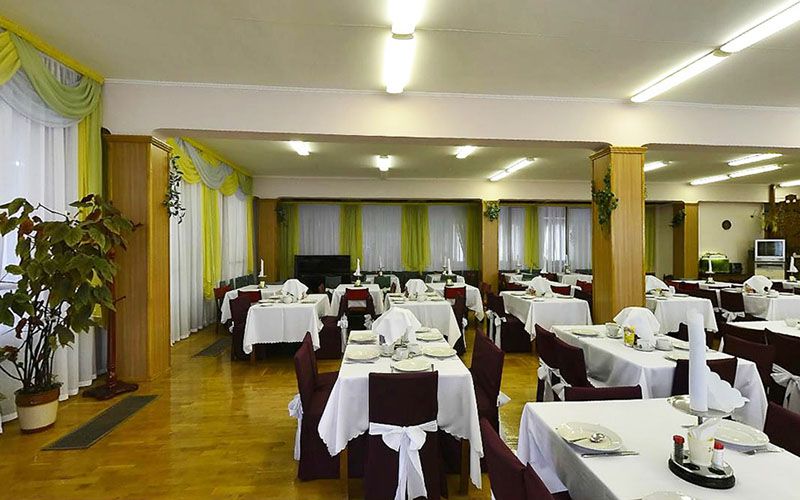 Ресторан находится в отдельном здании, в него нужно идти через улицу. За каждым номером закреплен свой стол на все время пребывания. Завтрак, обед и ужин длятся всего по часу, но при этом к началу приема пищи каждый стол уже накрыт и проживающим нужно только сесть и поесть, еду официант приносит сама. Еда отличная, разнообразная, но без возможности выбора. Что дадут, то и ешь. Хотя за время пребывания нареканий по еде вообще никаких не было.