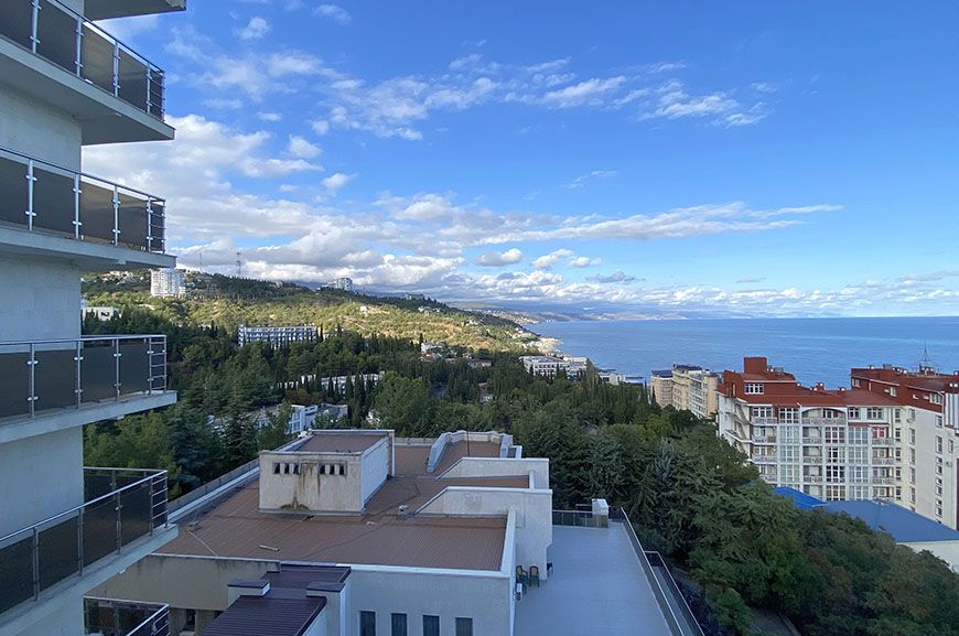 С балкона номера открывается вид на парк пансионата, горы, море в зависимости от расположения.