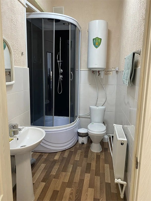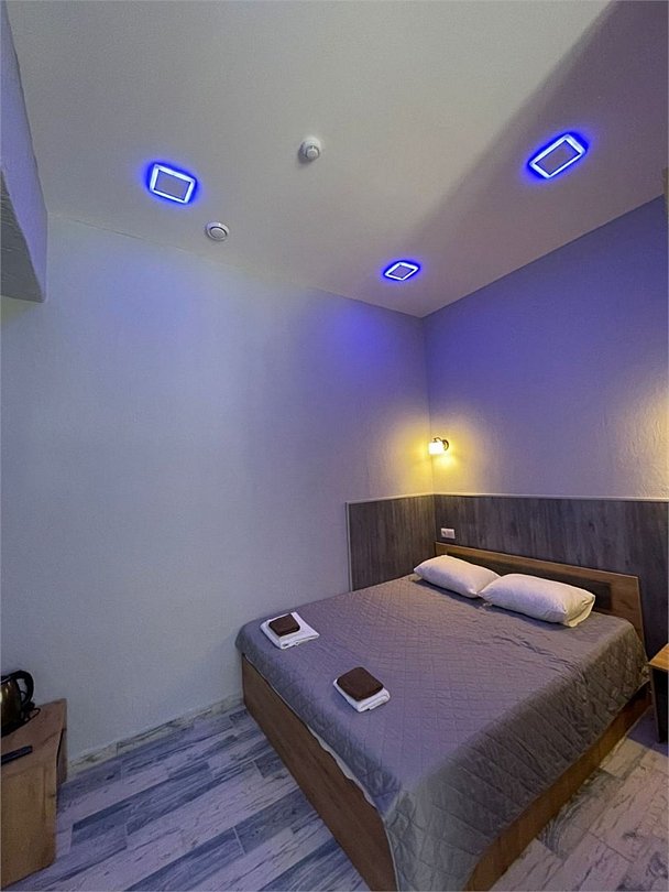 Большой просторный номер с ванной комнатой и отдельным входом. Ванная комната с душевой кабинкой. В номере набор полотенец, мини-парфюмерия, кондиционер, телевизор, электрический чайник, фен, мини-холодильник.