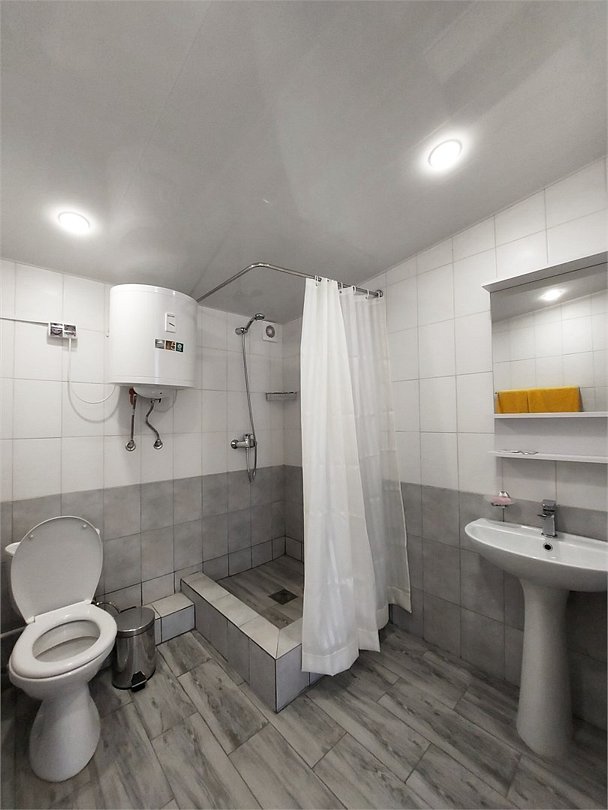 Три общие ванные комнаты и три санузла.
