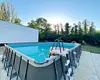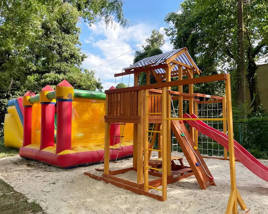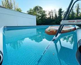 Тип бассейна: открытый бассейн, каркасный бассейнРядом с бассейном: шезлонгиПериод работы: летний сезон -