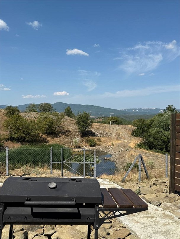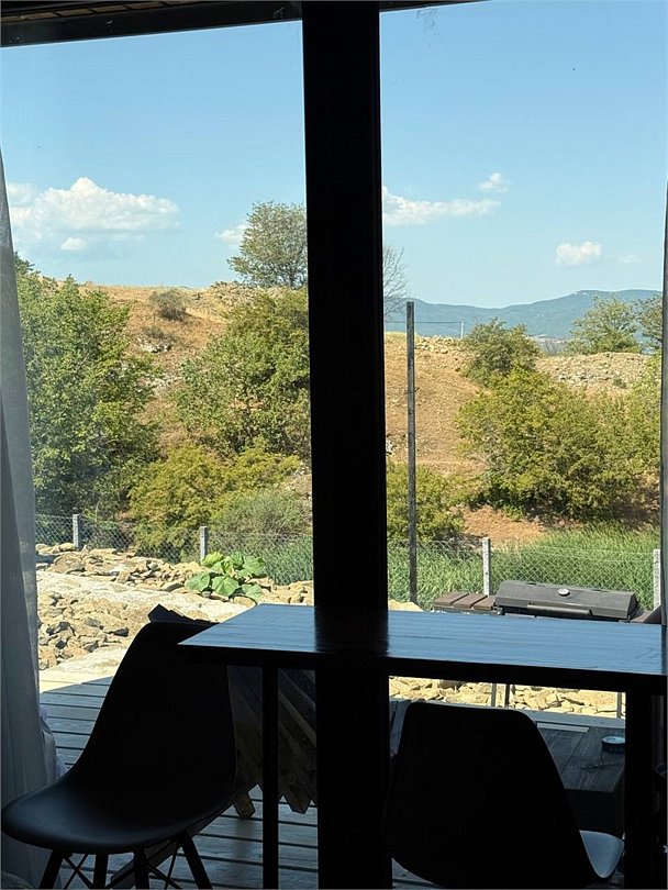 Двуспальная кровать, просторная ванная комната и небольшой кухонный уголок. Идеально подойдет для пары. Собственный мангал и уличная мебель.