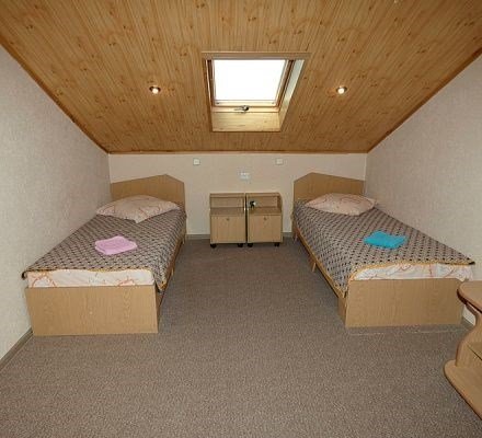 4 номера находяться на 4 этаже здания (мансарда),в них могут разместиться как большая компания друзей так и семьи с детьми,2 душа на этаже ,так же кухня с микроволновой печью эл.чайником находиться на этаже .Услуги и удобства