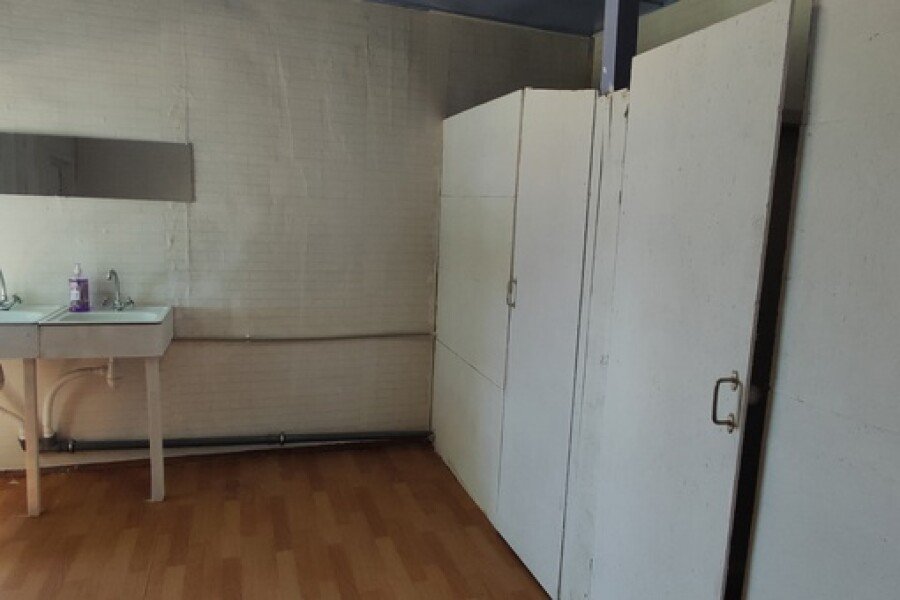 6 кабинок уличного туалета и отдельная санитарная зона (домик с туалетами и душем с горячей и холодной водой).