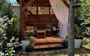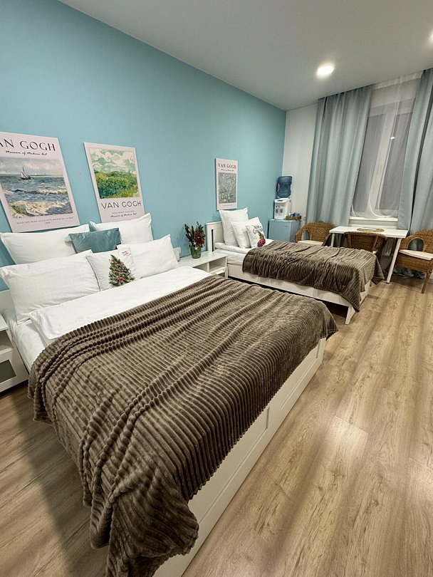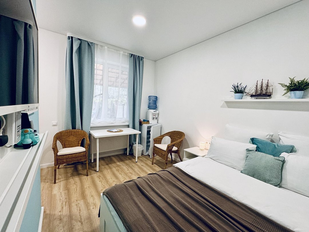 В каждом номере комфортабельная кровать king-size с ортопедическим матрасом и комфортабельными подушками. В распоряжении гостей есть удобная рабочая зона со столом и креслом. Гостевой дом подойдет как для длительного пребывания, так и для романтического отдыха или поездки с друзьями. Расстояние до песчаного пляжа 750 м. Есть свой парк с реликтовыми деревьями.
