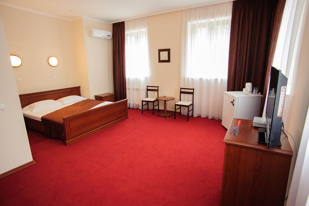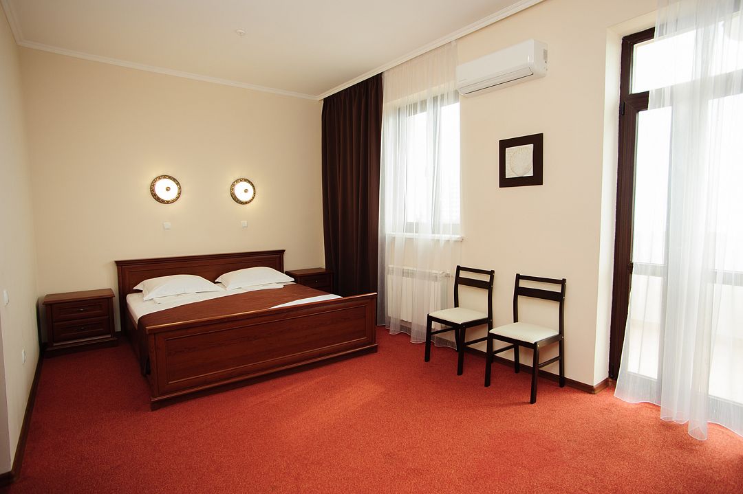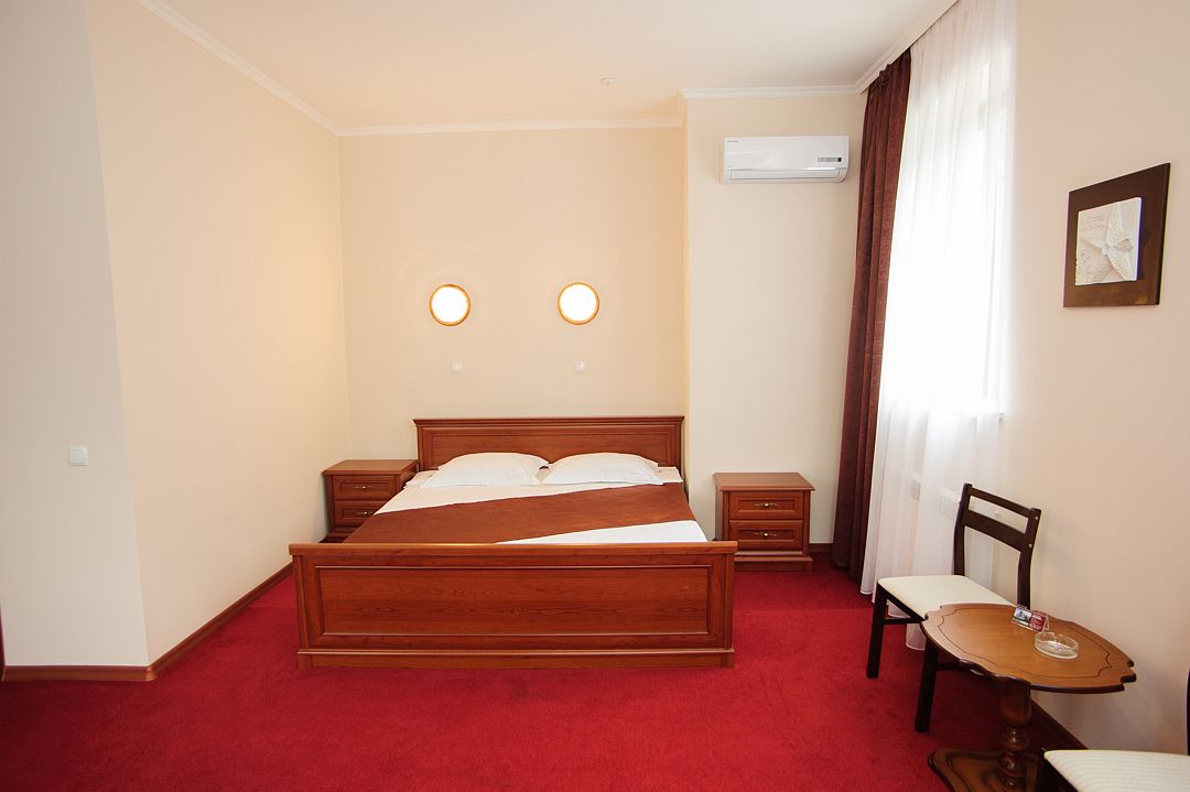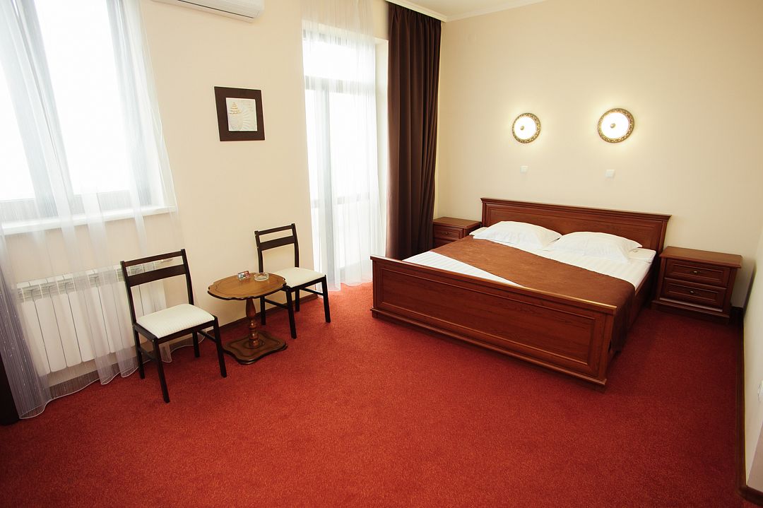 Номерной фонд располагается в 3-этажном здании, выполненном в дворцовом стиле. Гостям предлагается 4 категории номеров с различными условиями проживания. Все номера обставлены удобной мягкой мебелью и оснащены современной бытовой техникой. Каждый из них имеет собственную ванную комнату с набором косметических принадлежностей. Гости могут воспользоваться доступом в Интернет. На территории отеля работает кафе, предлагающее широкий выбор блюд. Кроме того, в каждом номере есть мини-холодильник и электрический чайник.