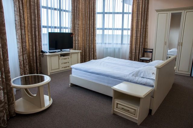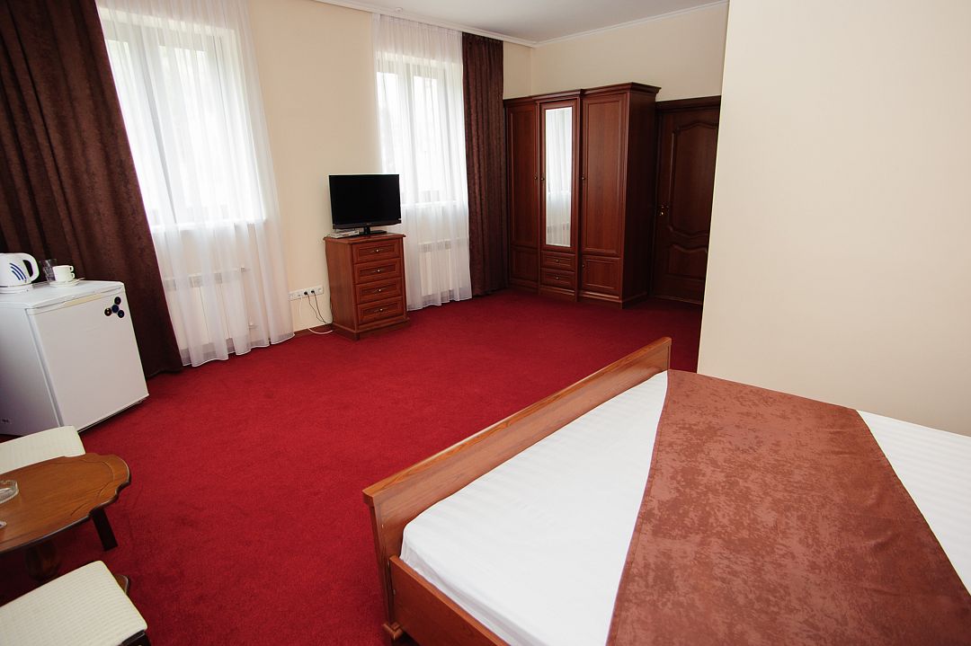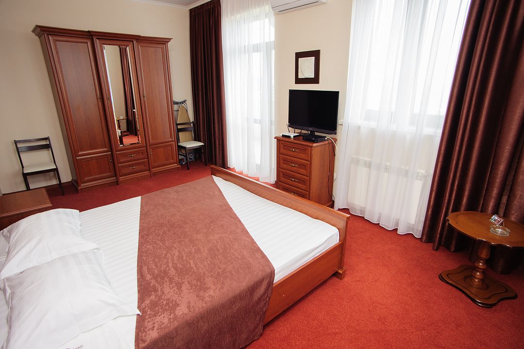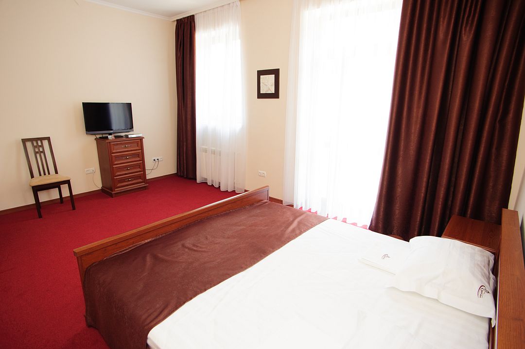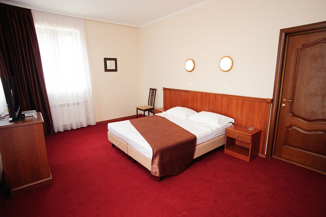 Номерной фонд располагается в 3-этажном здании, выполненном в дворцовом стиле. Гостям предлагается 4 категории номеров с различными условиями проживания. Все номера обставлены удобной мягкой мебелью и оснащены современной бытовой техникой. Каждый из них имеет собственную ванную комнату с набором косметических принадлежностей. Гости могут воспользоваться доступом в Интернет. На территории отеля работает кафе, предлагающее широкий выбор блюд. Кроме того, в каждом номере есть мини-холодильник и электрический чайник.