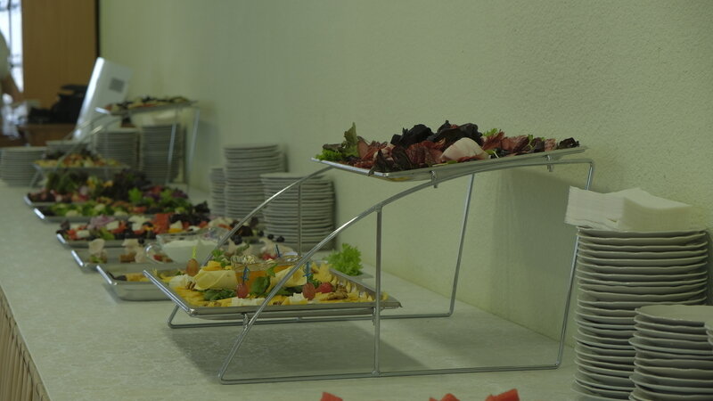 Трехразовое питание по системе «шведский стол» (до 40 человек — заказное меню) в двух залах кафе комплекса.