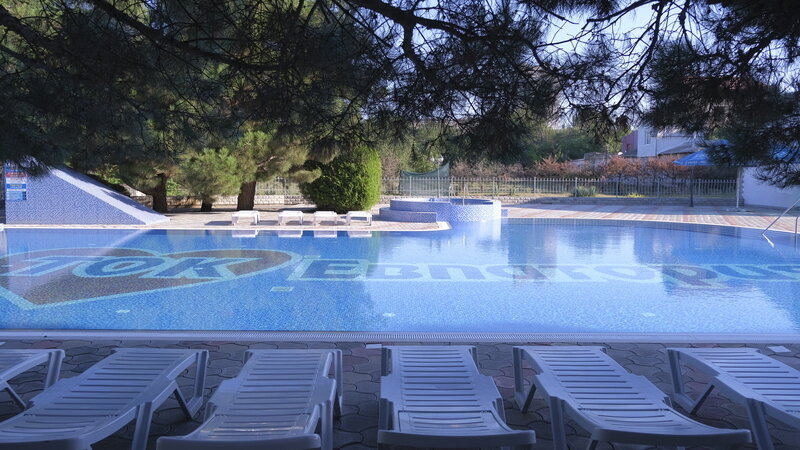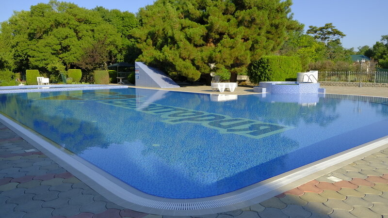 Тип бассейна: открытый бассейн, детский бассейнРядом с бассейном: шезлонги, зонтикиВремя работы: от 08:00 до 20:00Период работы: от 01.05 до 30.09, летний сезонДетский бассейн