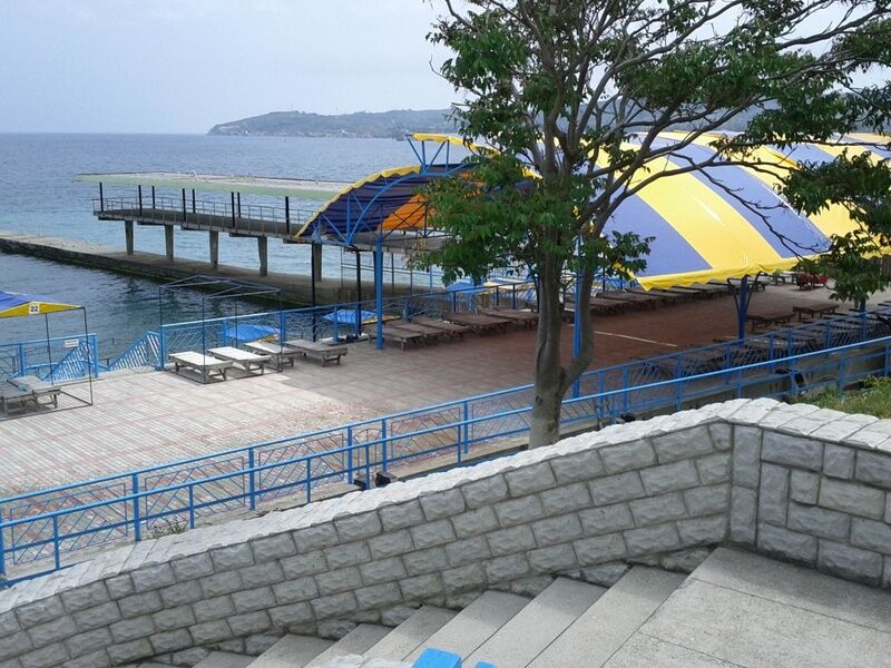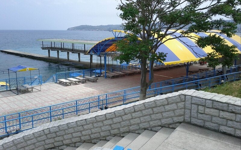 Неподалеку от пансионата имеется свой трехуровневый благоустроенный пляж: