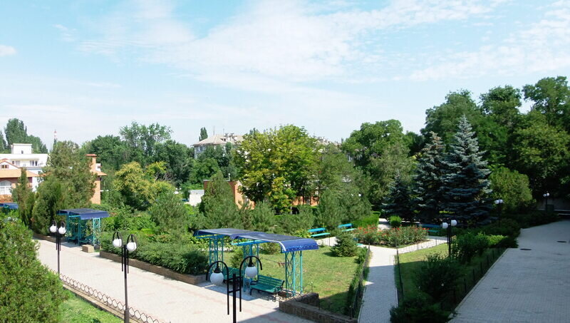 На благоустроенной, озелененной территории пансионата масса приятных уголков и зон отдыха, имеется детская игровая площадка.