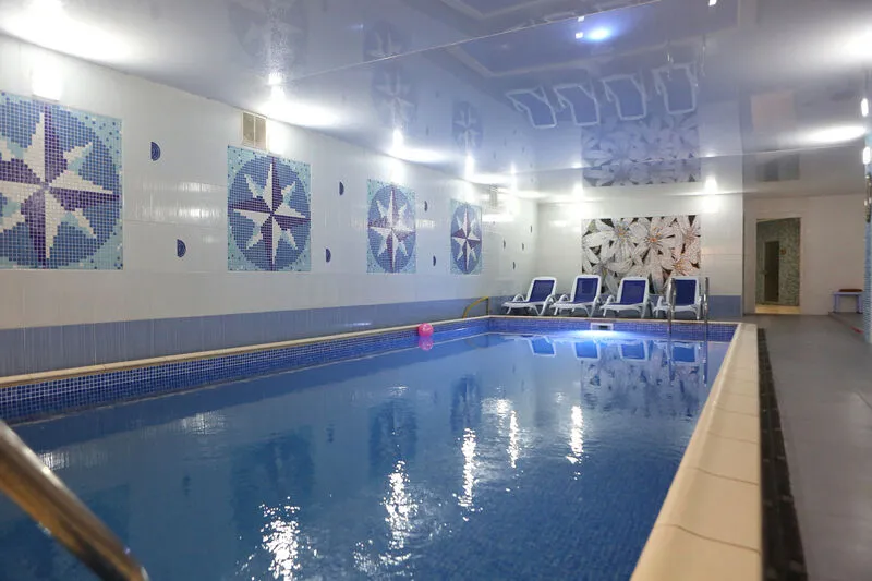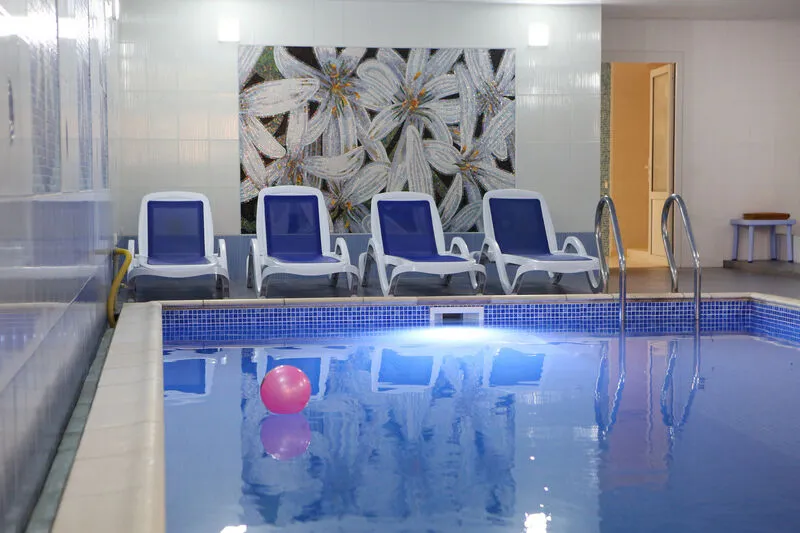 - Подогреваемый крытый бассейн с пресной водой,