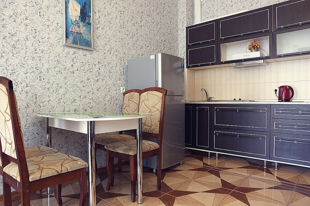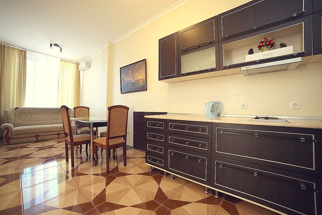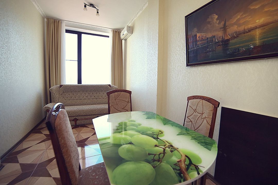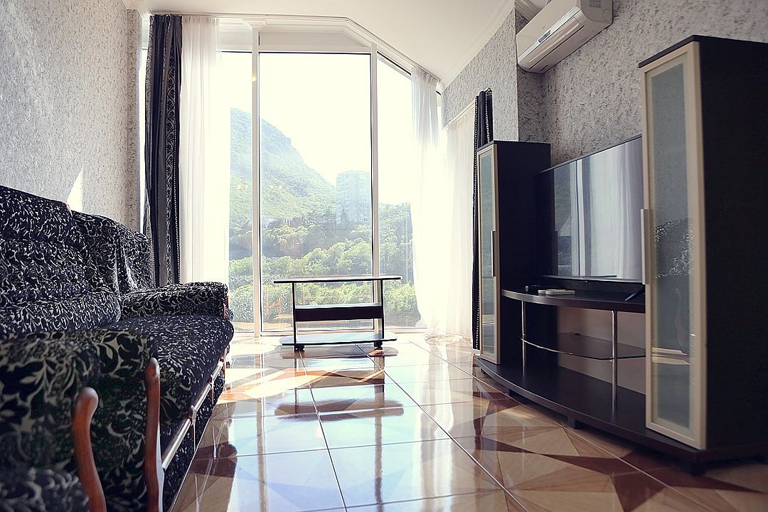 Просторный трехкомнатный номер с видом на Медведь-гору или с балконом на теневую сторону или с панорамными окнами на Медведь-гору (без балкона). В каждом номере кухня с посудой и столовыми приборами, собственная ванная комната. В каждой комнате кондиционер.Услуги и удобства
