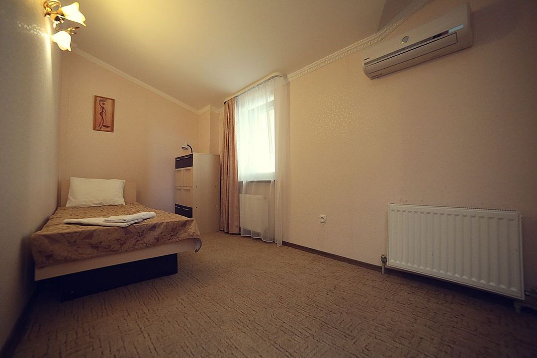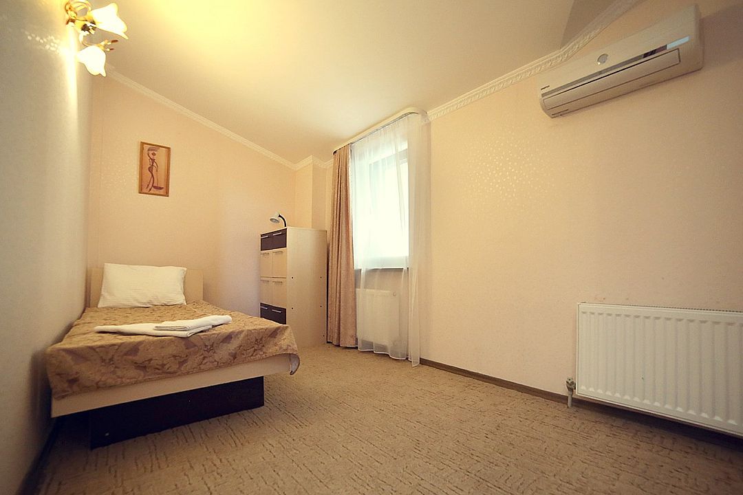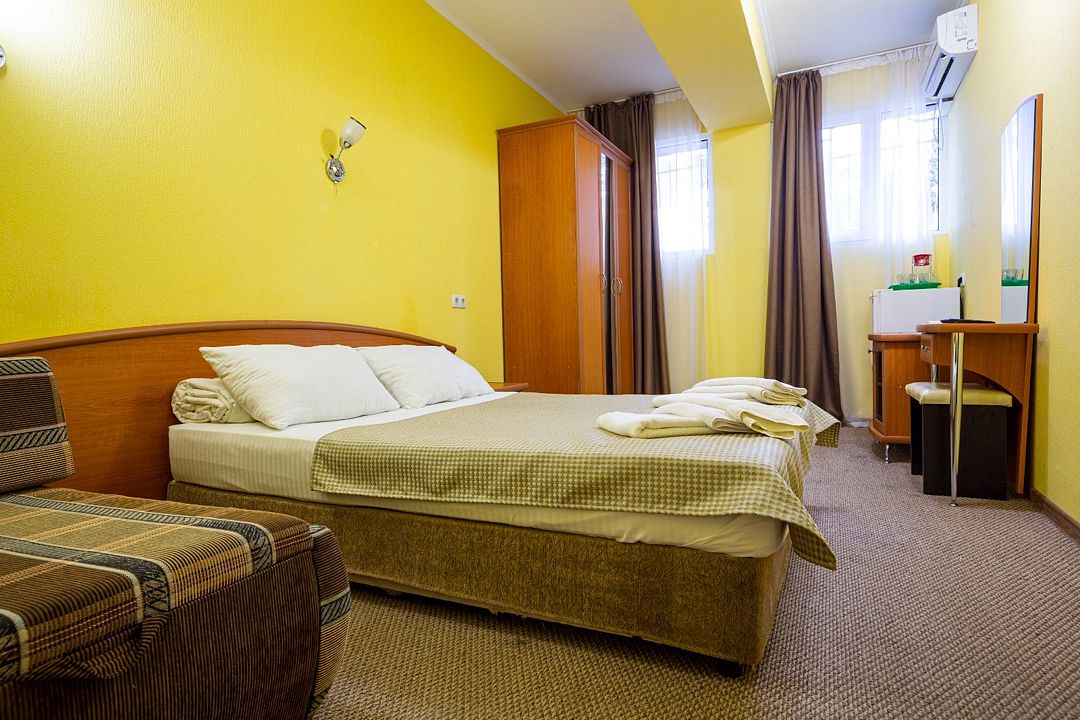 Для менее требовательных и практичных отдыхающих предлагаем номера ЭКОНОМ — компактные, экономные и одновременно практичные. Этот номера содержит все самое необходимое для отдыха. В комнате находится телевизор, трюмо, шкаф с зеркалом и вешалкой. В номере есть холодильник. Номер оборудован кондиционером. Трехместный номер (двуспальная кровать или 2 односпальные), 1 этаж Холодильник, сплит-системаУслуги и удобства
