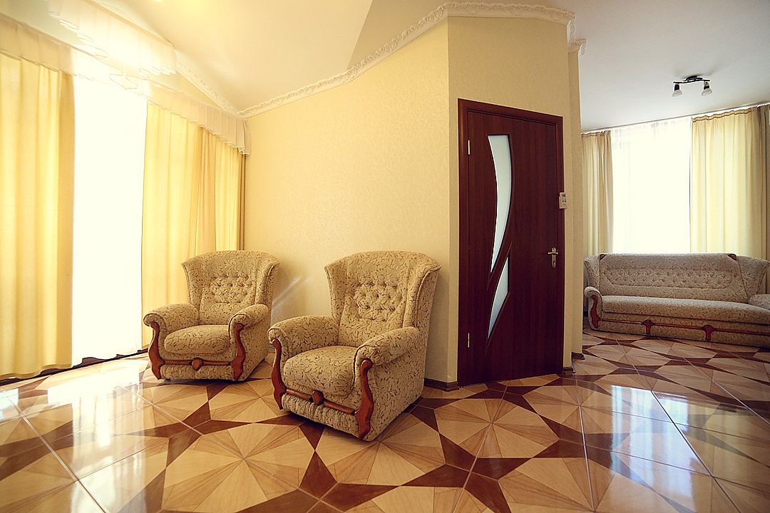 Двухкомнатный номер с собственной ванной комнатой. В номере кондиционер, телевизор, чайник, холодильник. Размещение на двуспальной кровати в одной комнате и раскладном диване в другой.Услуги и удобства