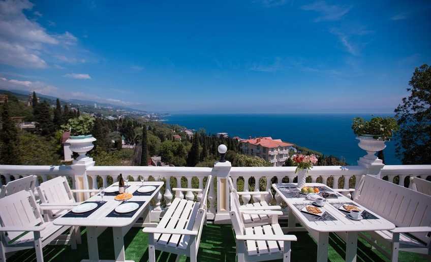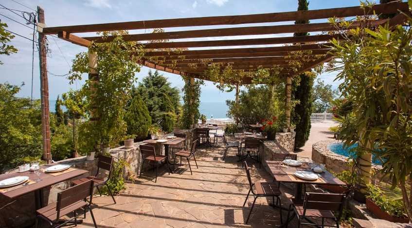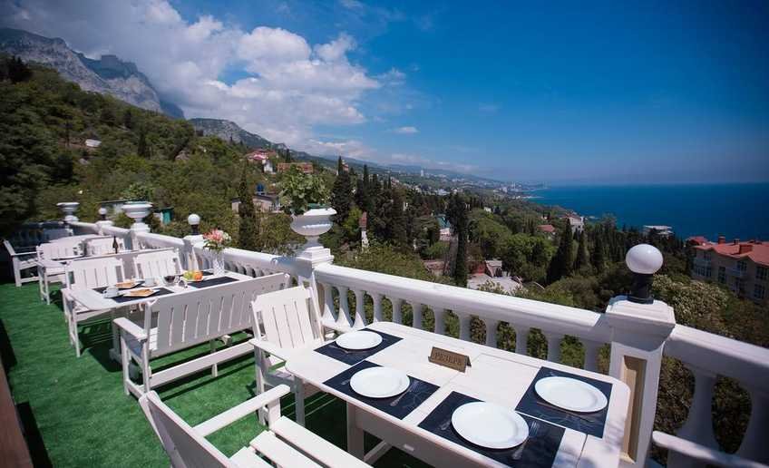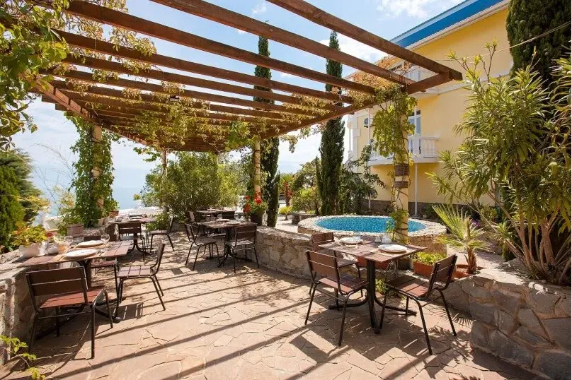 На территории отеля в Алупке в Крыму работает ресторан* с летней площадкой. Ресторан открыт как для постояльцев, так и для гостей.