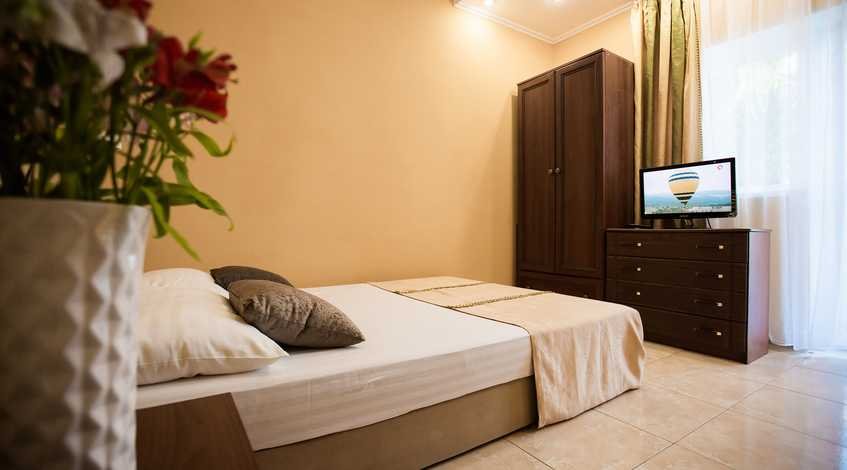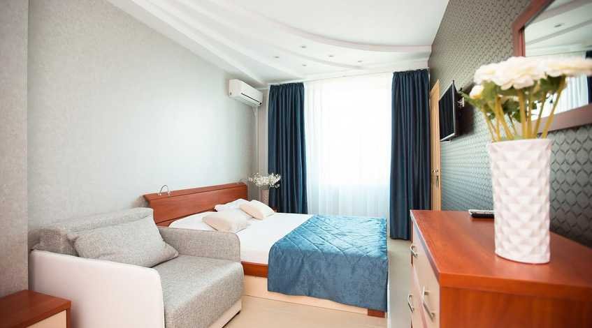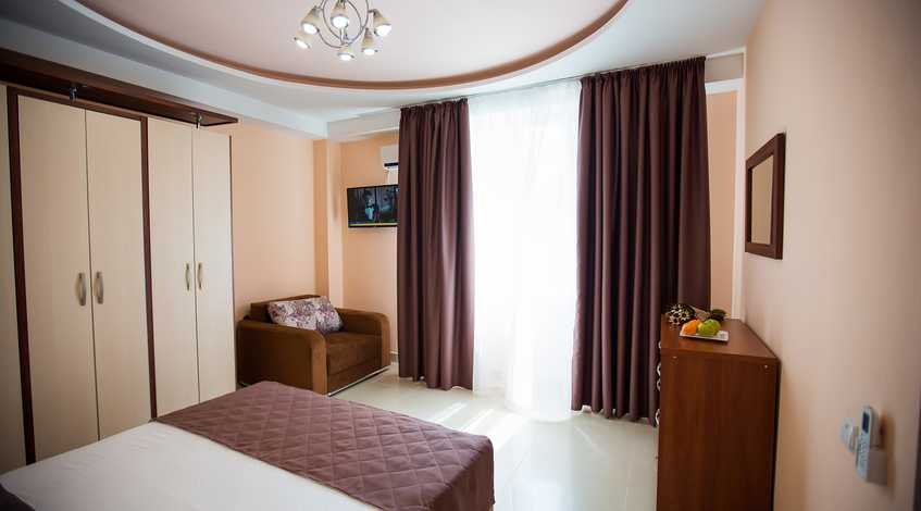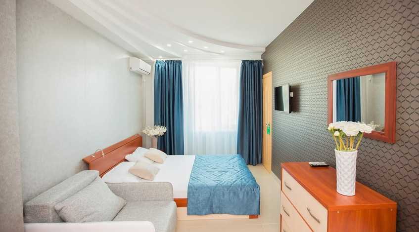 Номер оснащен современной мебелью, рассчитан на проживание семьи из 2-3 человек: 2 основных места проживания, 1-2 дополнительных места предоставляются бесплатно.