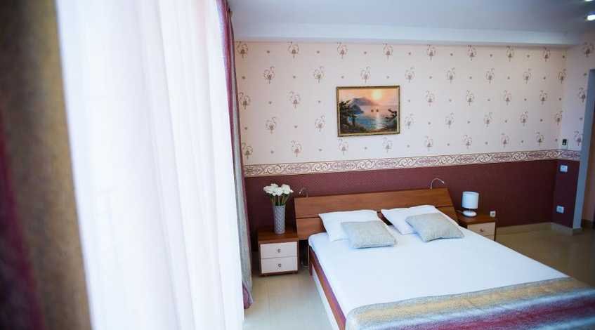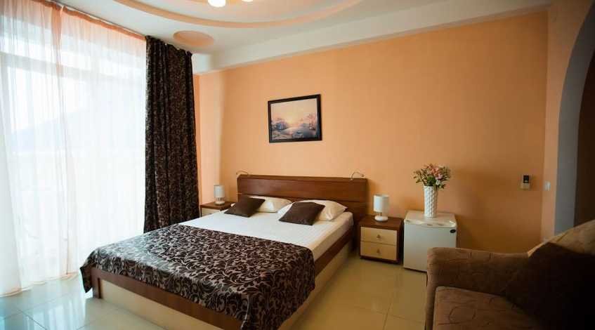 Путешествие с семьейОтличный отдых в АлупкеОстанавливались семьёй в 22м номере, на 2м этаже. С двумя балконами. Номер замечательный за эти деньги (5 500 руб в сутки) . В номере большая 2х спальная кровать и диван для ребёнка. Постельное белье отличного качества, подушки прям как нам надо, удобные. Причем их 5 шт. 3 одеяла, 3 банных полотенца, 3 ножных, 3 для рук. На тумбах светильники, кондиционер, вода все время была и горячая и холодная. Холодильник хорошо охлаждает. Чайник тоже есть. Одноразовые шампуни, гели. Вот что приятно удивило- даже пилку для пяток положили. Всякие спонжики, палочки, губку для лица. И в подарок мне и супругу пробники духов)) Утюг по требованию. Баня очень хорошо была протоплена. 2ч 2000руб. Из недостатков- не хватило полочки для одежды. Хотя шкаф был, но мы не любим вешать. В номере очень чисто, уборку проводили каждый день. Один раз поменяли постельное белье. Виды, конечно, потрясающие из номера. Ради этого и выбрали его. Очень понравилась дорога к пляжу. Идти с ребёнком 4 лет 15 мин . Мы любим пешком ходить, поэтому нам понравилось. Такси волна от пляжа Зелёный Мыс , если устали , 5 мин, 200 руб. Ресторан тоде отличный. Завтраки разнообразые, работают с 8.30. Обедали и ужинали редко. При отъезде подарили пакет с подарками в дорогу. Было очень приятно)) Вобщем, отличный отдых! Большое спасибо за сервис. Приехали бы ещё?Однозначно.