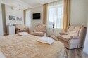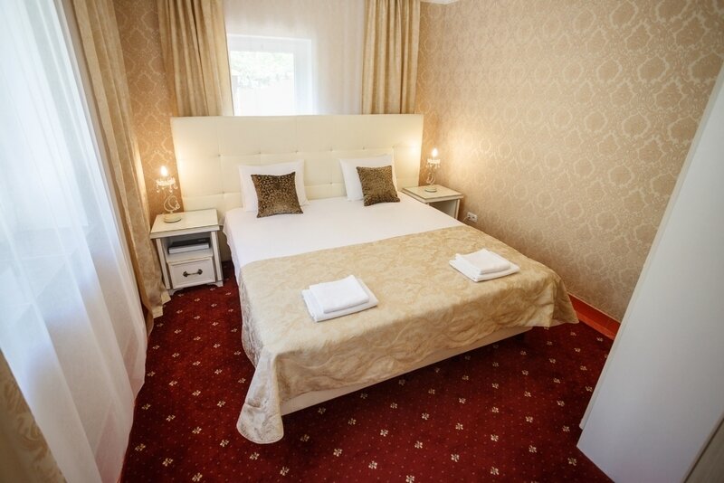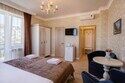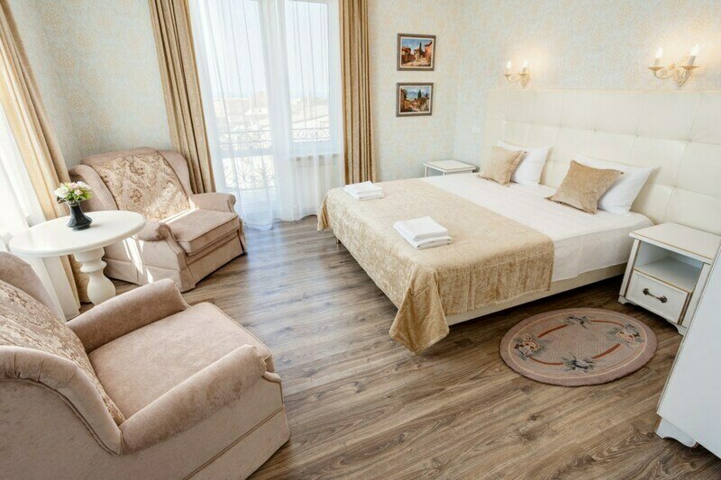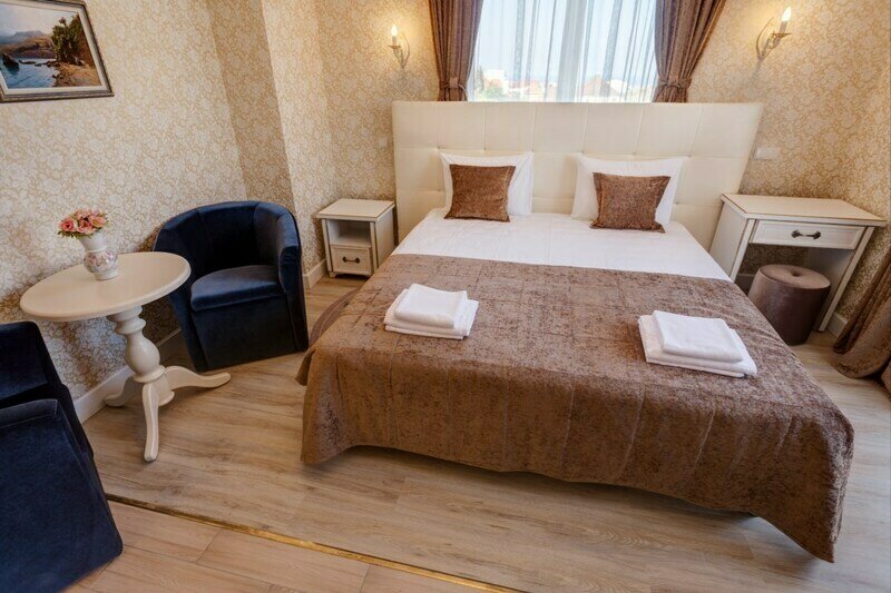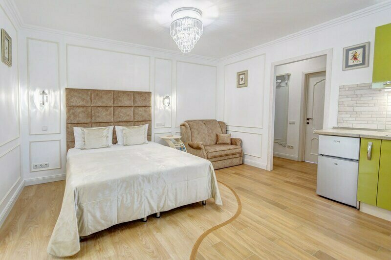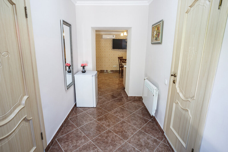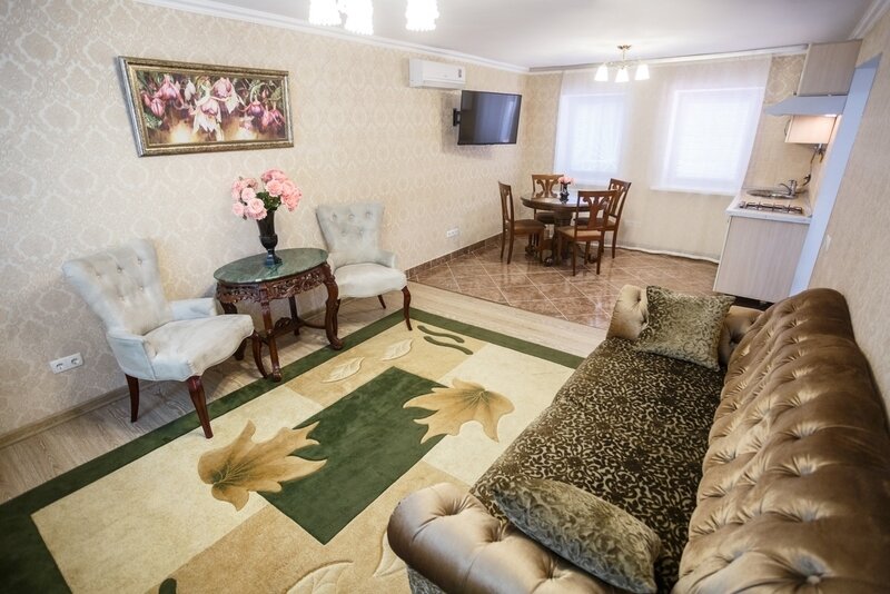 Четырехэтажное здание гостевого дома возвышается в квартале малоэтажной застройки. Гостей ожидают однокомнатные и двухкомнатные номера с классическими стильными интерьерами, оформленными в светлой цветовой гамме. Ряд номеров оснащен мини-кухней с индукционной плитой, везде имеется индивидуальная ванная комната с душевой, удобные двухместные кровати king size, также предусмотрены балконы, а из техники есть кондиционер, плазменный телевизор и фен.
